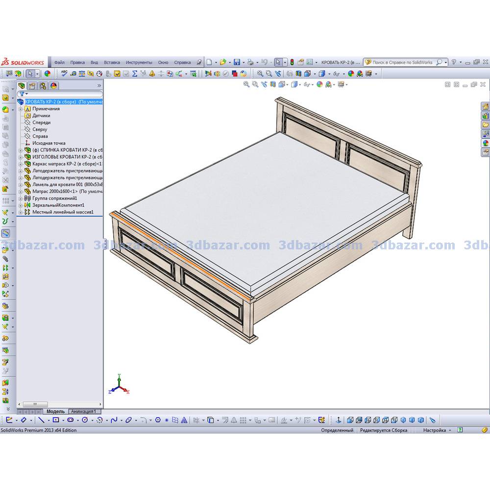 При наличии программы SolidWorks, кровать можно масштабировать под другие размеры матраса.