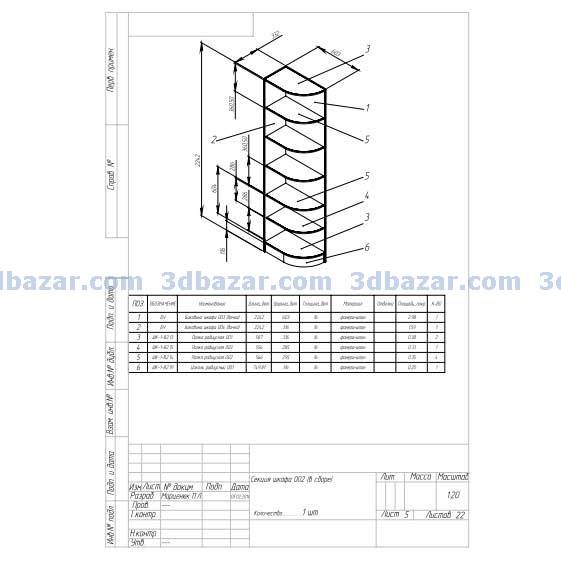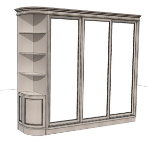 Шкаф купе на три двери с зеркалами и радиусными полками. Подробно проработанная сборка SolidWorks и подробные чертежи для изготовления шкафа купе (+PDF формат). Дополнительно модель сохранена в других форматах для импорта в популярные CAD и CAM системы.