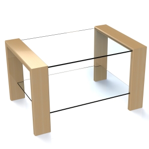 Модель небольшого журнального столика (1050 х 700 х 600) со стеклянной каленой столешницей, стеклянной полкой и деревянными ножками, который отличается простой и оригинальной конструкцией.