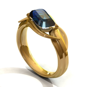 Кольцо золотое с драгоценным камнем "бенитоит". Диаметр 17,5 мм, вес 9,8 гр. , масса камня 1,9 карат. В архиве файлы SolidWorks, IGES, X-B, STL, STEP14 , FotoWorks.