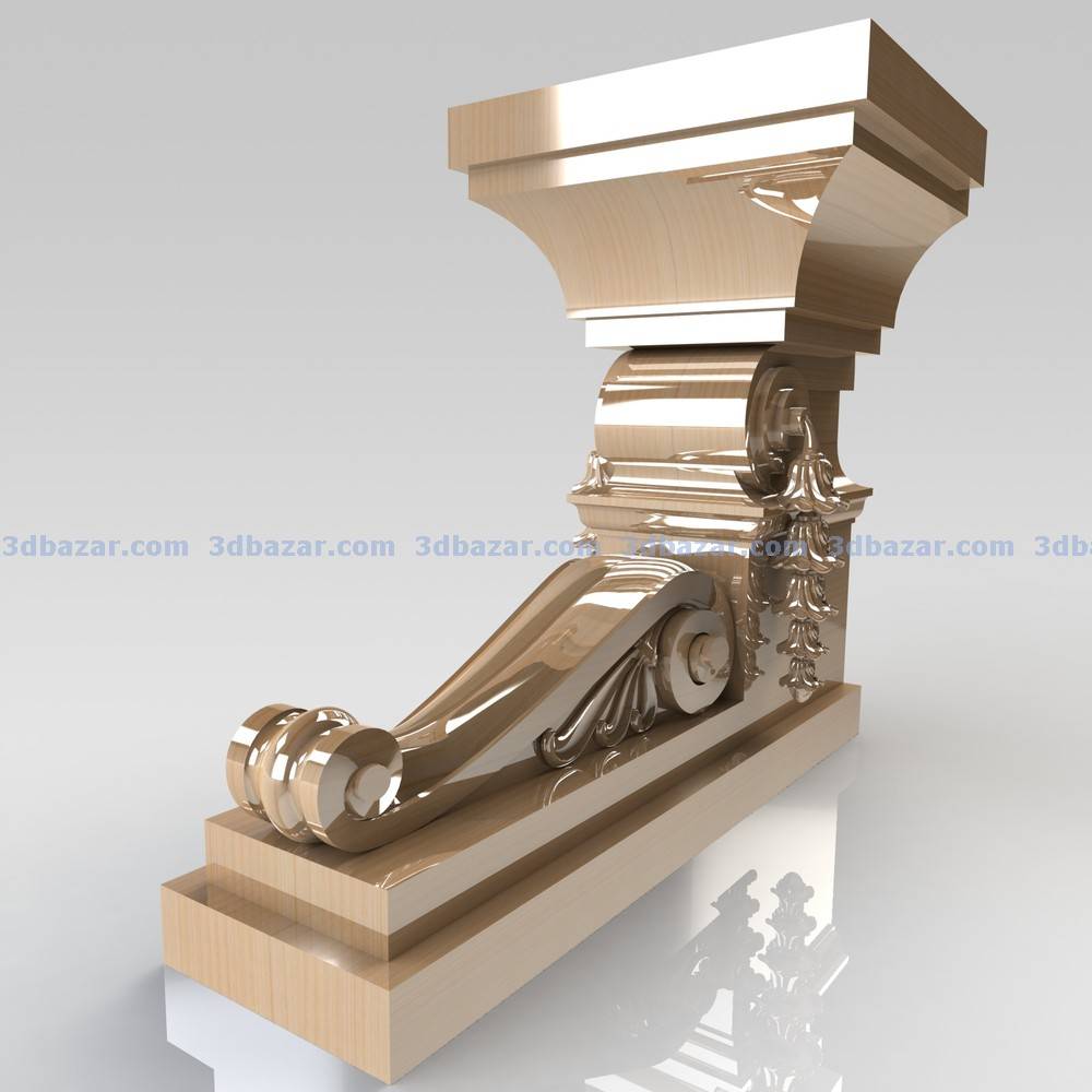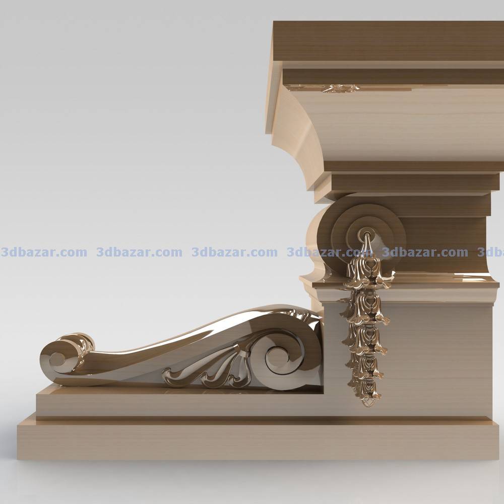 Архитектурная консоль размером 470 х 554 х 292 мм, полностью спроектирована в среде Solid Works. Размер резной консоли 340 х 120 х 104 мм. Все резные элементы сделаны отдельными телами что бы их можно было использовать отдельно. Консоль может быть использована при проектировании классической мебели, лестниц, беседок и т. д.