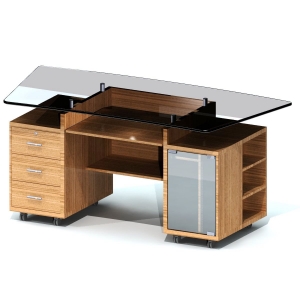 Стол компьютерный с стеклянной столешницей и дверкой, имеет системное и офисные отделения, а также полки для дисков. Материал для изготовления ЛДСП 16мм -28мм и каленное стекло. Архив содержит 31 деталь и файлы экспорта (IGES, STL, X-B, Step14 ).