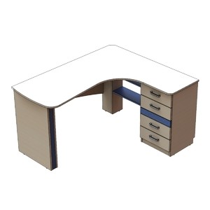 Среда моделирования SolidWorks. Габаритные размеры 1400х1200х730. Разработана подробная сборка модели стола. Стол оборудован тумбой с выдвижными ящиками. Стол оснащен опорой мебельной - подпятник регулируемый М6, что позволяет регулировать стол по уровню в пределах 20-25мм.