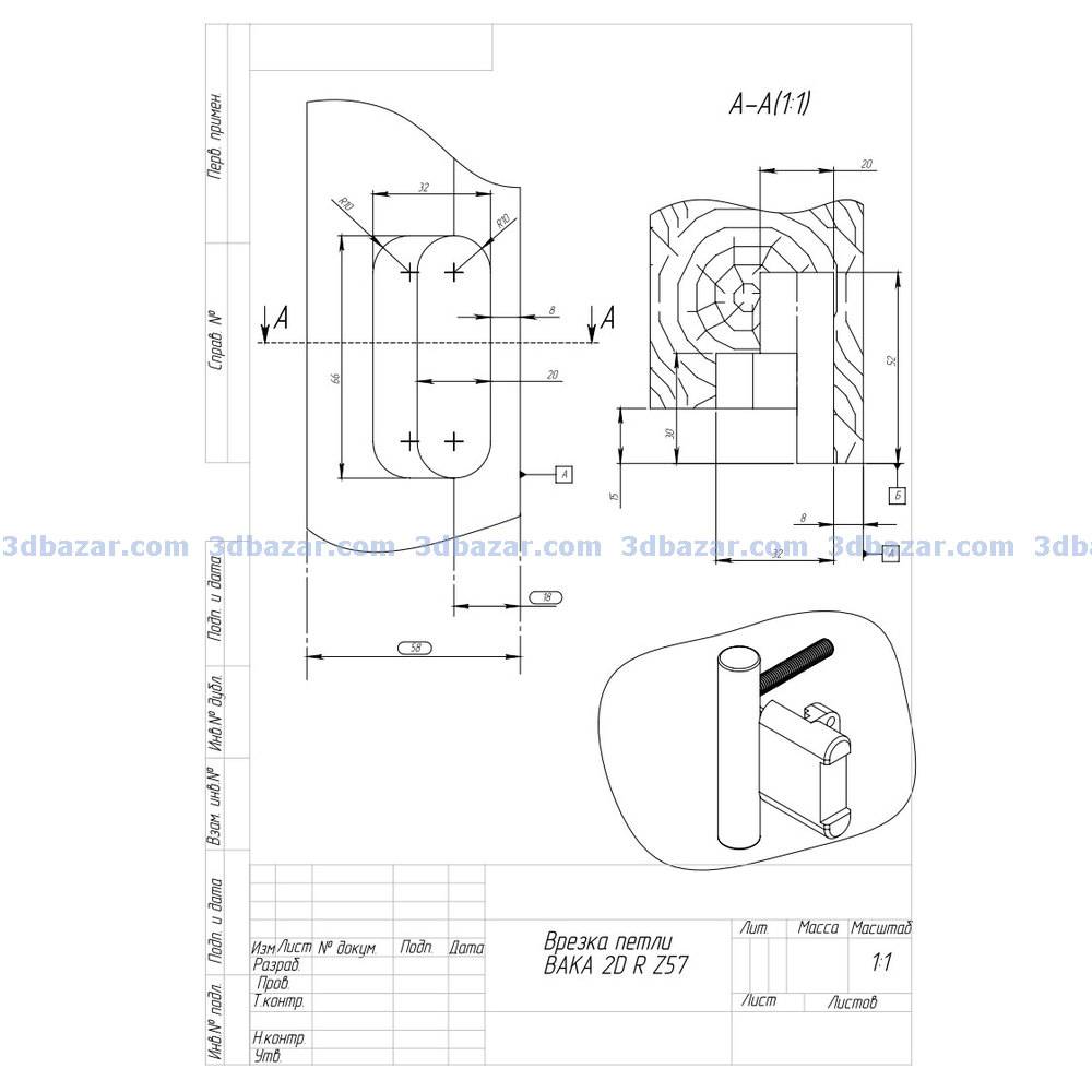 Петля для входных дверей SIMONSWERK BAKA 2D 20 RZ 57 смоделирована с настоящей петли путем обмера электронным штангенциркулем. Имея такую петлю, Вы сможете избежать ошибок при проектировании входных дверей, улучшить детализацию сборки, проверить угол открывания дверного полотна.