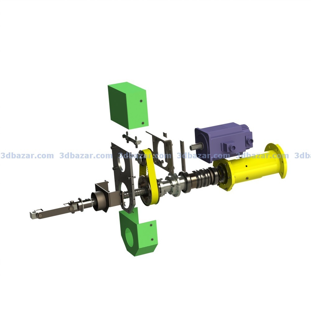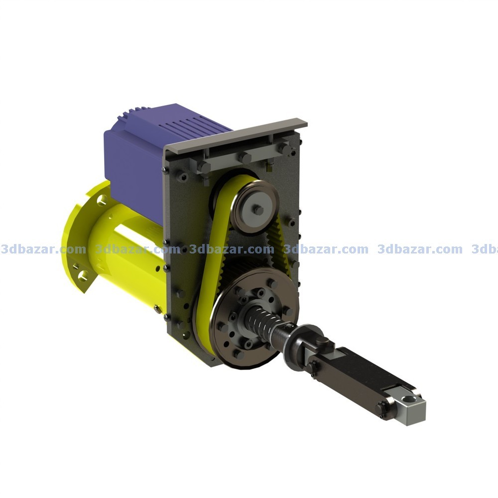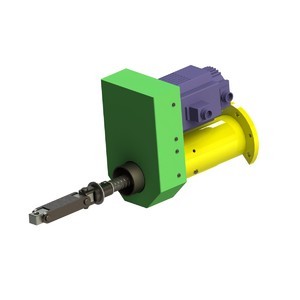 Привод продольного хода на базе серводвигателя ESTUN и блока управления серии ProNet может быть применен в любых исполнительных механизмах для реализации точных линейных перемещений (инструментальный шпиндель, державка и т. д.). Передаточное отношение привода - 1:2. Параметры серводвигателя - мощность 1.0 кВт, крутящий момент 4.8 Н.м, обороты - 2000 об/мин. Для получения линейного перемещения применена шарико-винтовая пара (ШВП) с шагом винта 10мм.