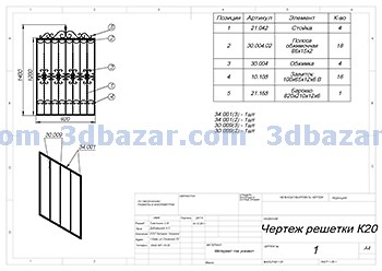 Решетка кованая выполнена с декоративных элементов компании «Артдеко»(www.artdeco.ua) Подробно проработанная сборка SolidWorks. Решетка смоделирована в масштабе 1:1
