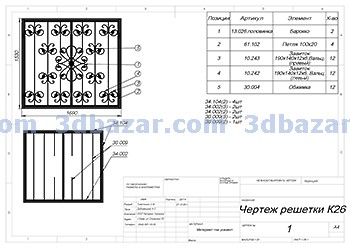 Решетка кованая выполнена с декоративных элементов компании «Артдеко»(www.artdeco.ua) Подробно проработанная сборка SolidWorks. Решетка смоделирована в масштабе 1:1
